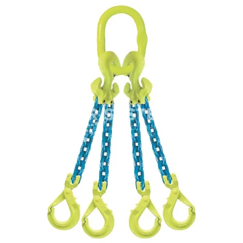 Строп цепной четырехветвевой 4СЦ производства Gunnebo г/п 14 т, длина 10 м, изготовленный из цепи диаметром 13 мм — это такелажное цепное приспособление, фиксация которого осуществляется за четыре опорные точки. Такой строп собирается из овального концевого звена с подзвенниками, к которому с помощью разборных соединительных звеньев крепятся круглозвенные цепные ветви, на свободных концах которых устанавливаются чалочные крюки с защелками.