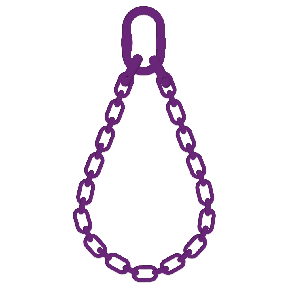Строп 1СЦвз собирается из отрезка круглозвенной цепи, которая образует петлю, и двух соединительных звеньев типа «бабочка», с помощью которых цепь установлена на овальном концевом звене.