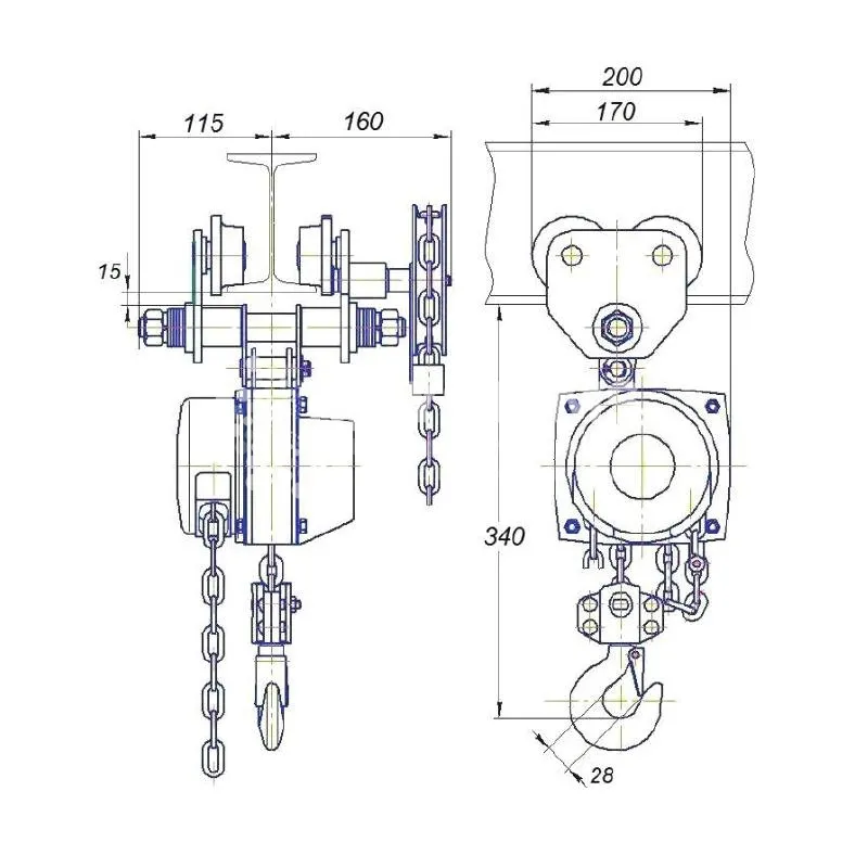 Таль ручная шестеренная передвижная СВПК ТРШБМ г/п 10 т, L=6 м — фото превью