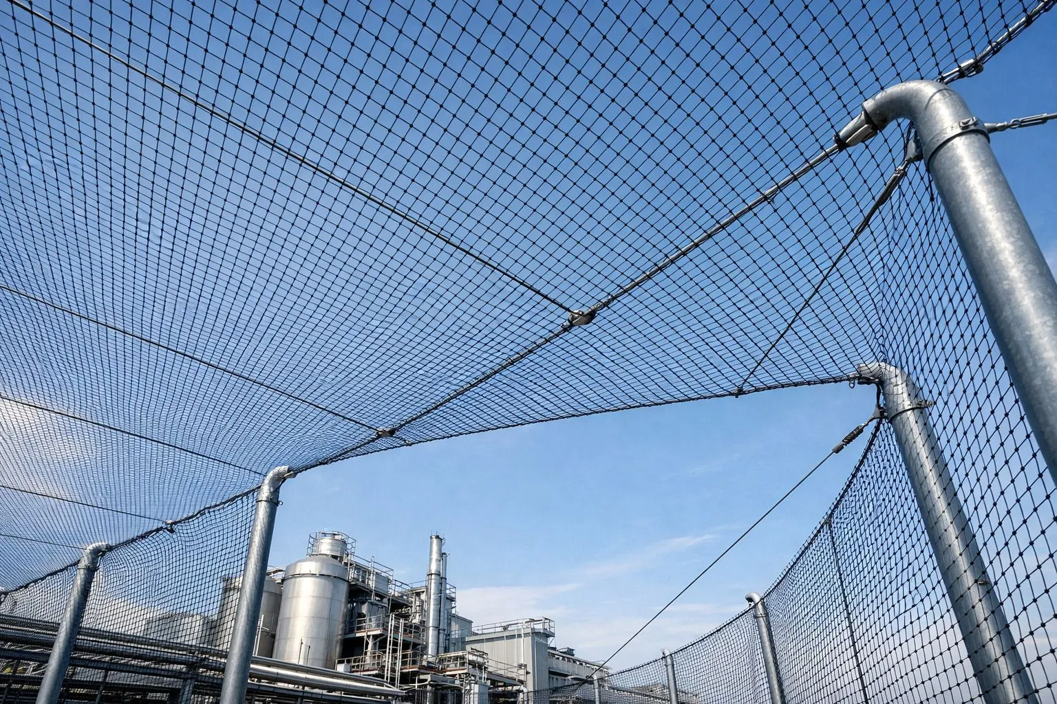 На практике защитные сетки от дронов и БПЛА выбирают там, где нельзя «играть в рулетку» с простоями: уязвимые узлы инфраструктуры, производственные площадки, открытое оборудование, периметры складов. Это пассивная система: она не требует электроэнергии, операторов и не зависит от внешних помех — работает за счет расчетной механики и правильно собранных узлов.